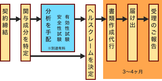 御社と契約締結後、関与成分を特定し、ヘルスクレームを決定しましたら、3~4カ月で受理される流れとなります。