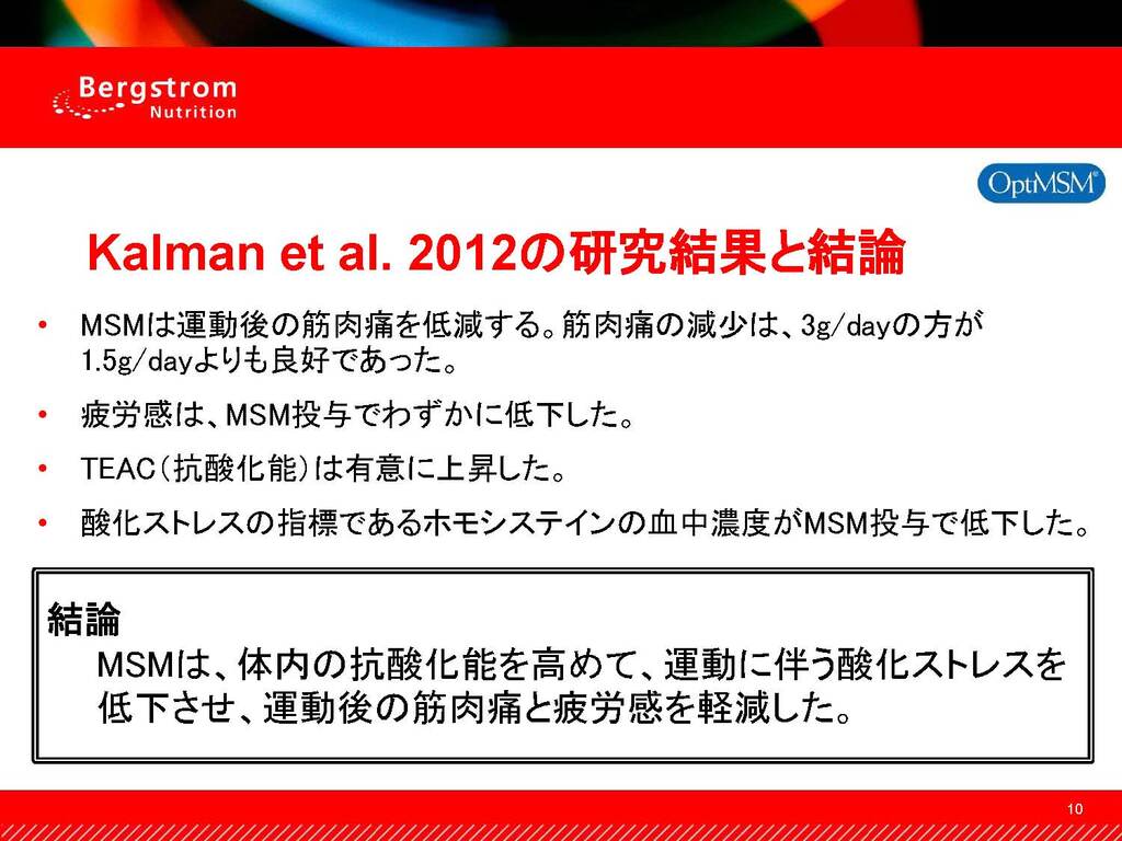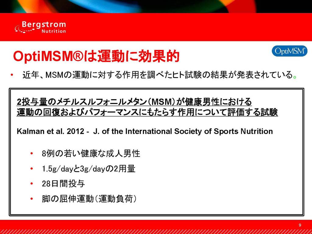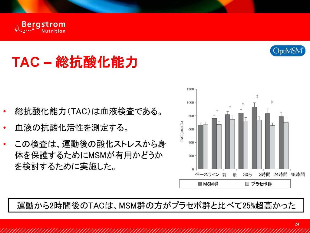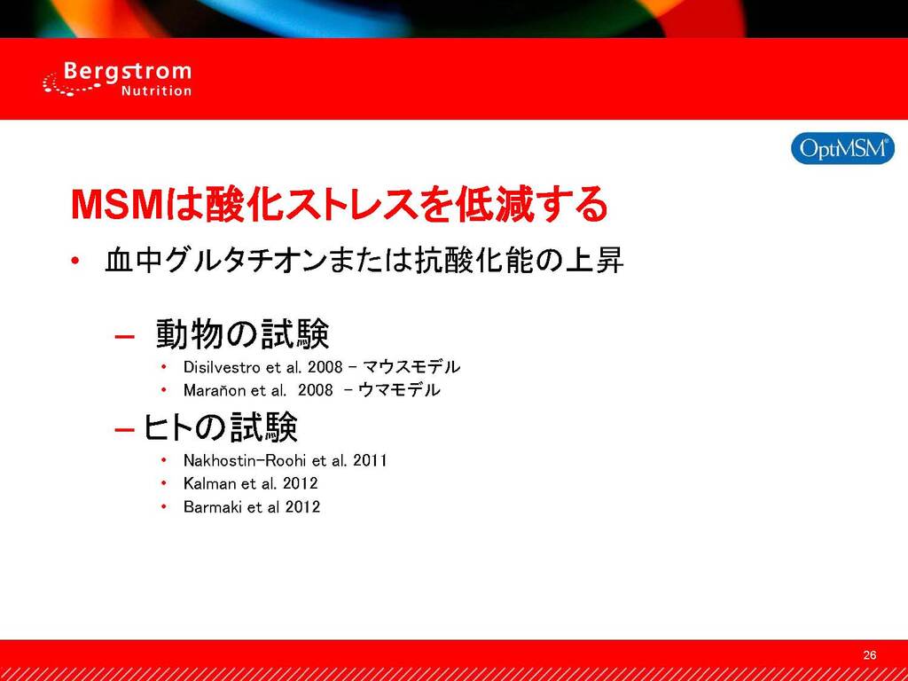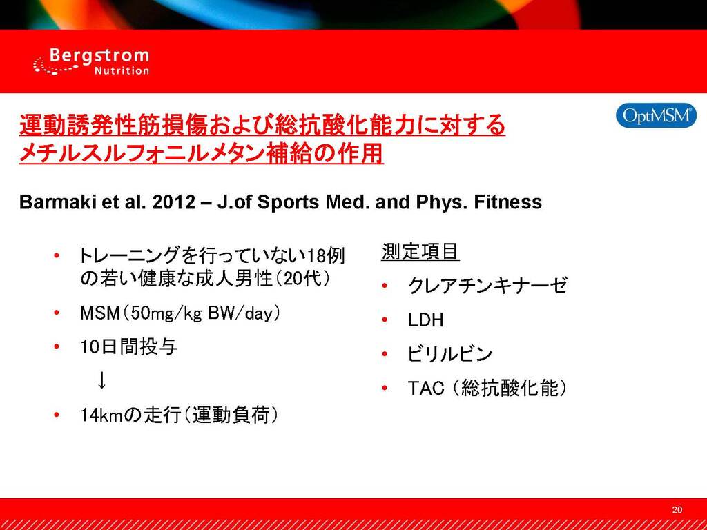 - 運動能力および抗酸化能力に対するメチルスルフォニルメタンの作用