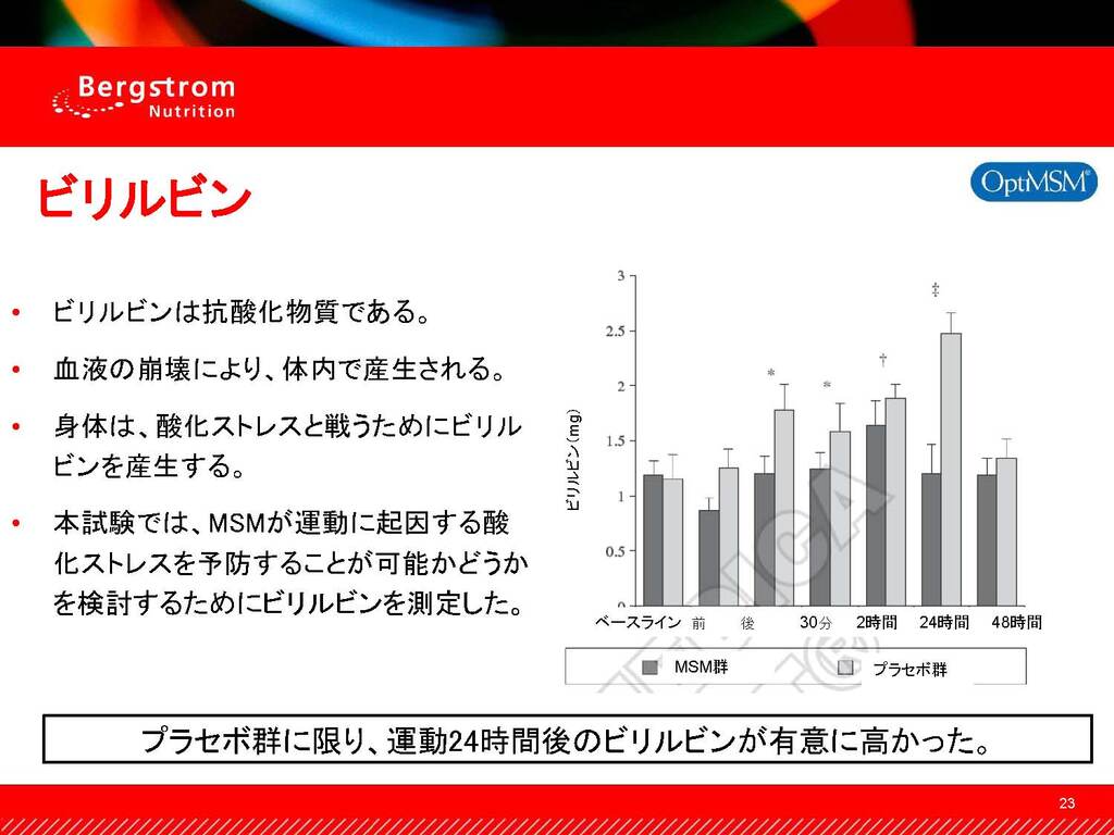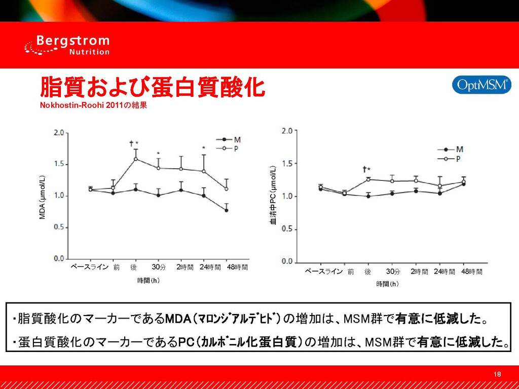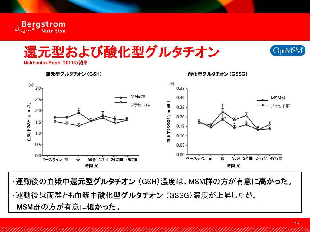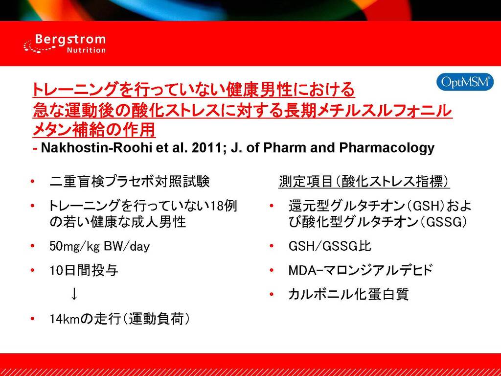 - トレーニングを行っていない男性における急な運動後の酸化ストレスに対する長期メチルスルフォニルメタン補給の作用