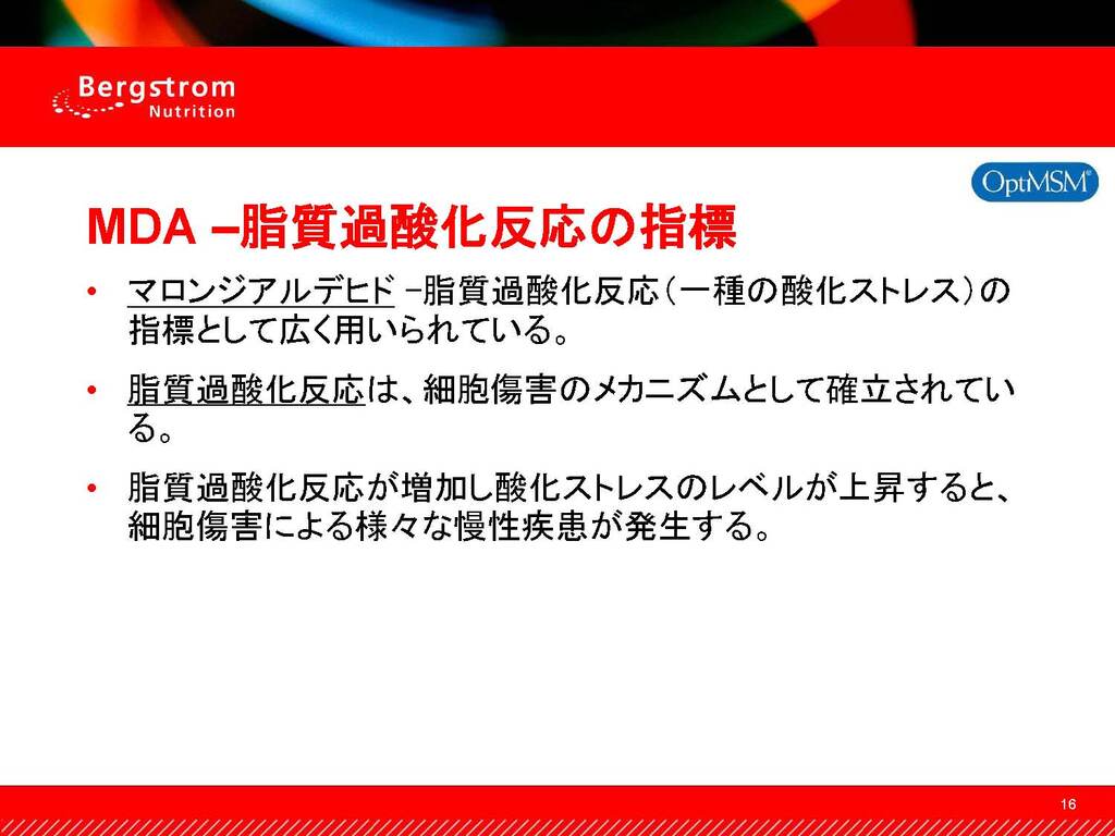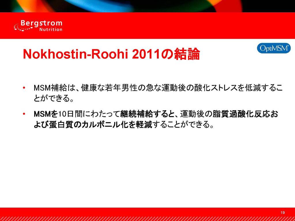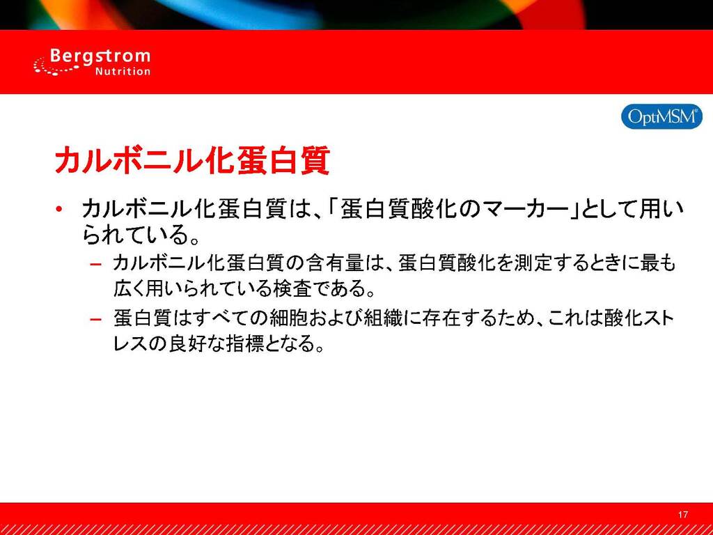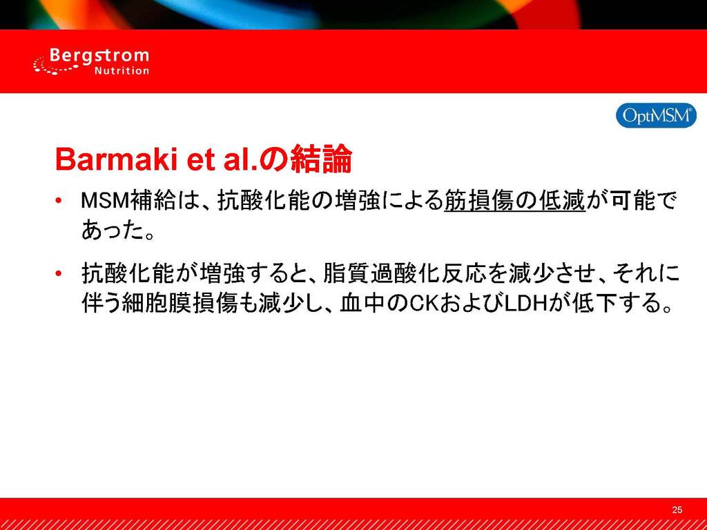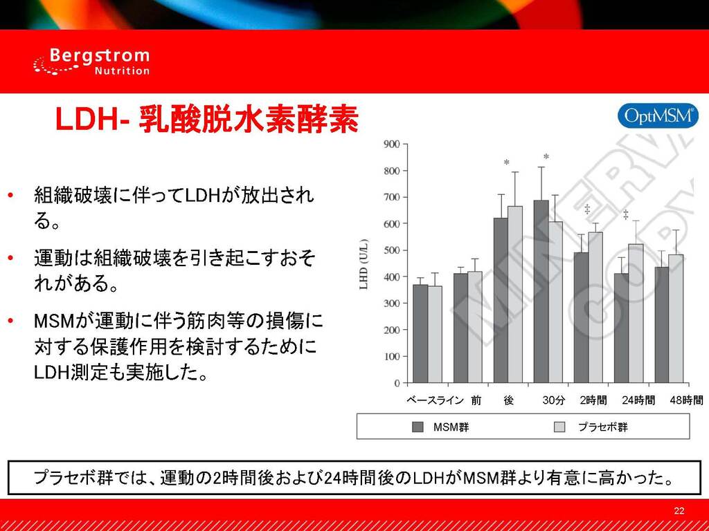 - トレーニングを行っていない男性における急な運動後の酸化ストレスに対する長期メチルスルフォニルメタン補給の作用