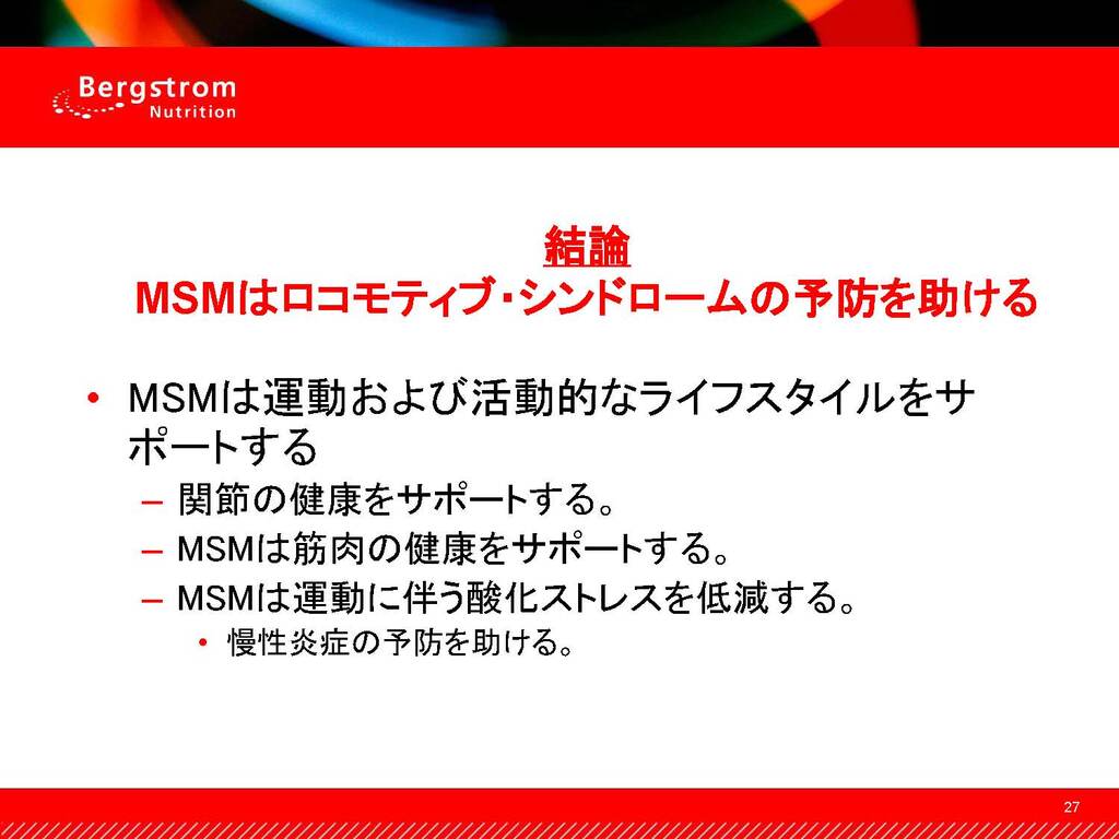 - MSMはロコモティブ・シンドロームの予防を助ける