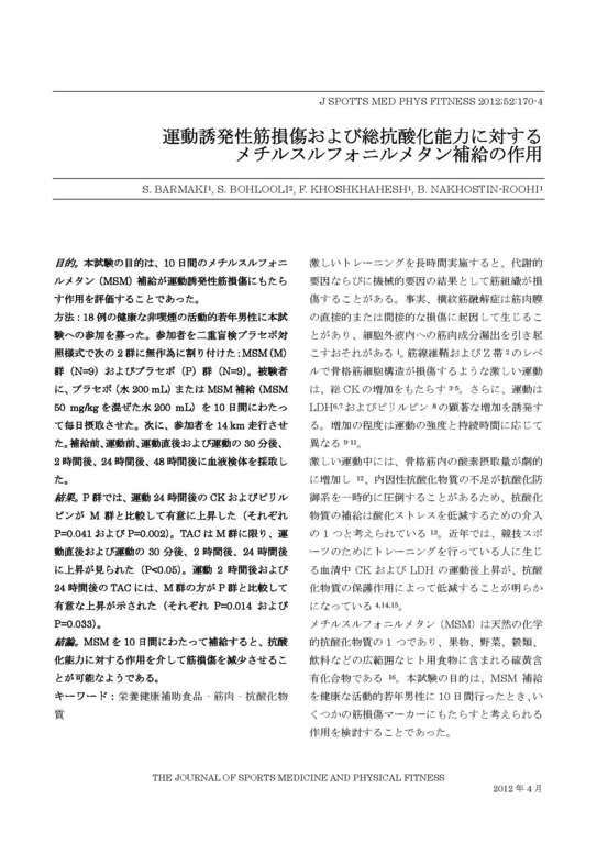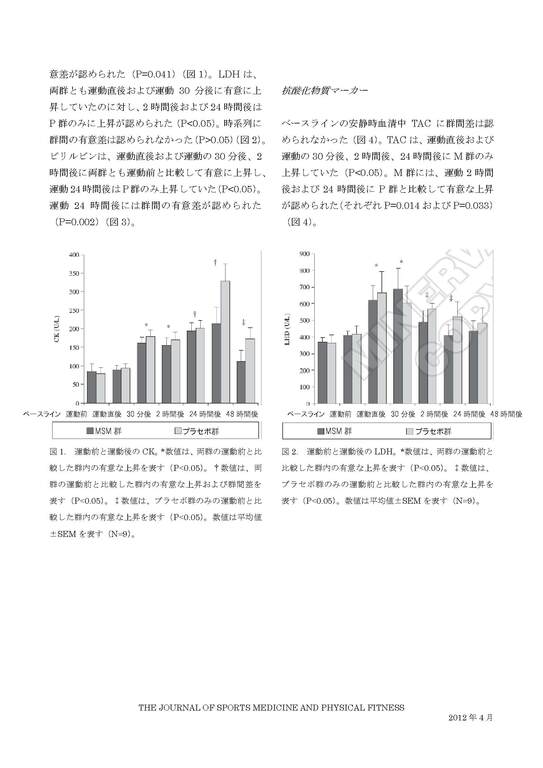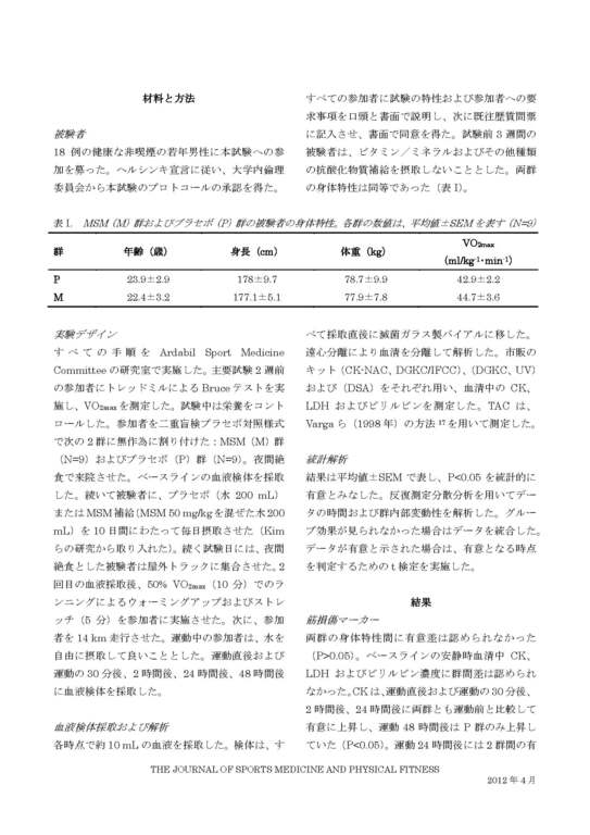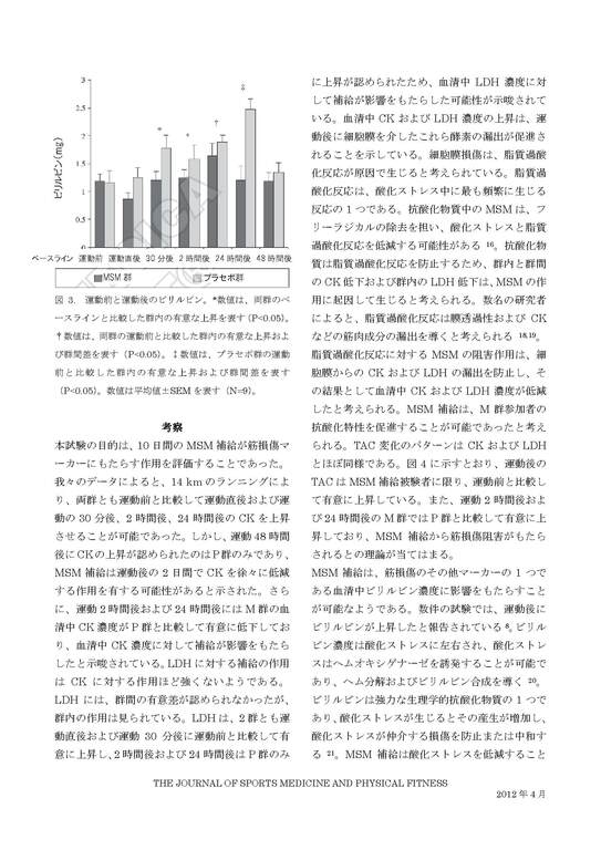 運動誘発性菌損傷およびそう抗酸化能力に対するメチルスルフォルニルメタン補給の作用
