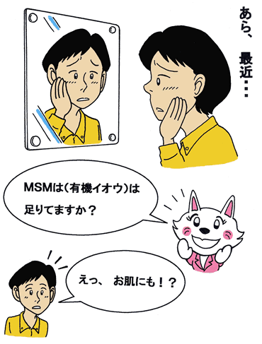イオウの有効な供給元であるMSM(有機イオウ化合物)がアンチエージングで注目されているのは、若々しいコラーゲンの合成を促進し、しみやたるみや肌荒れを防ぎ、肌や髪や爪を健康的で美しくさせる効果があるからです。