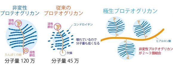 そのプロテオグリカン複合体の分子量は250~350万であり、生のプロテオグリカンの状況に極めて近いプロテオグリカン(極生プロテオグリカン)が存在することも明らかになっています。