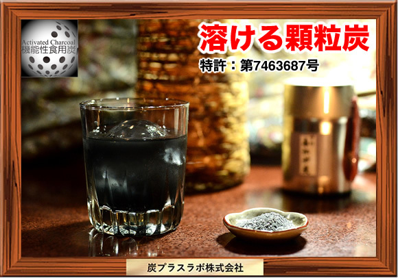 3年以上の歳月をかけて機能性食用炭微粉末の顆粒化に成功しました(特許出願済)。顆粒炭はボトルに入れた「ふりかけタイプ」などにも活用でき、その用途は多岐にわたります。黒い微粉末が飛散しないため、周囲を汚さず、またサッと溶けるのでその使い勝手の良さが大変好評です。