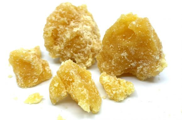 カンナビノイドとテルペンを蒸留し、各製品規格に精製・加工した固形原料。 ※種類によって色や香りが異なります。