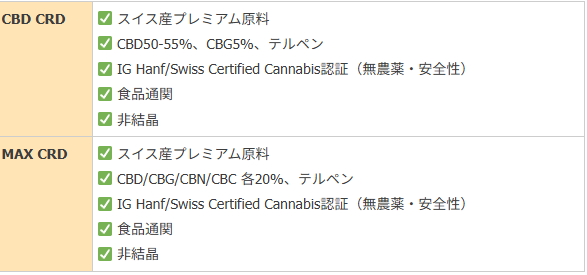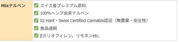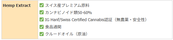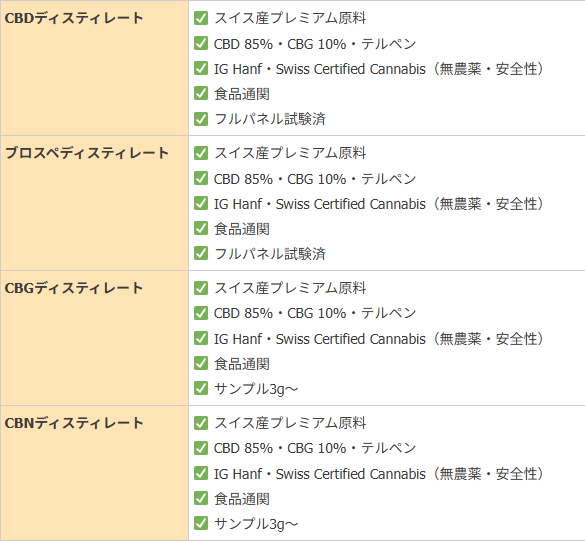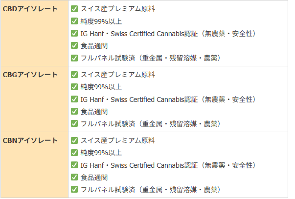 - 規格成分 CBD99%以上、THC日本新基準準拠