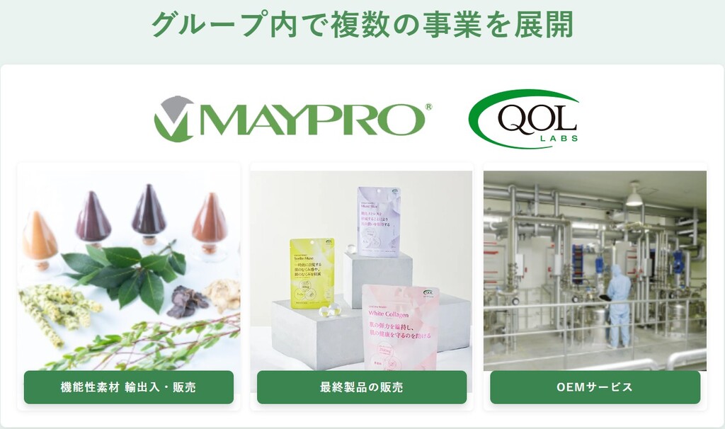 健康食品分野を主軸とし、メイプロを母体とする機能性素材のトレードを基盤に、