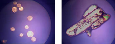 (左)蒸留法で精製されたMSMの結晶