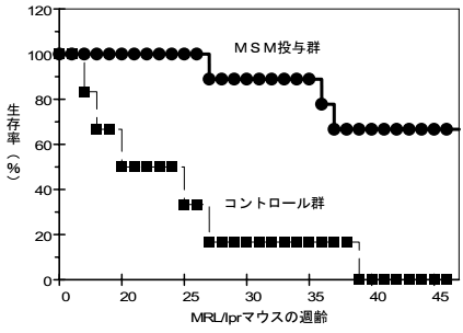 - MSMは、自己免疫疾患の発症を予防することによりマウスの寿命を延長させた。