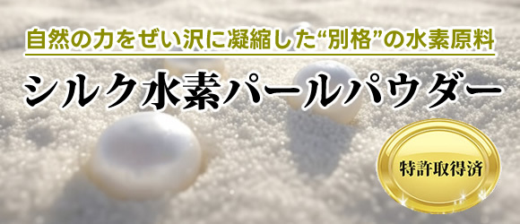 このシルク水素パールパウダーは、出来るだけ水素を溶存させるためにはどうすればいいかから逆算して原料選びからこだわり、開発した素材です。