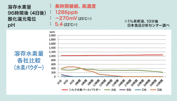 その結果、水素の溶存時間においても優れた機能性を示す水素パウダーになりました。