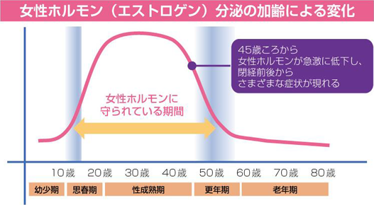一番の理由は、女性らしさに関係するエストロゲンが年齢とともに減少することだろう。女性の社会進出によって、一般的に更年期が始まるといわれる45歳以降も職場にいることも当たり前になっている。