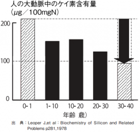 ケイ素は体内では生産されず加齢と共に減少してしまうため毎日10〜40mgは外部から補給する必要がある。