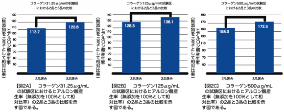ヒアルロン酸⽣成の相乗効果を⽰す