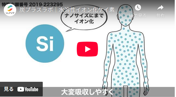「水溶性イオン化ケイ素」とは、独自の技術で水晶・竹・もみ殻・湧き水・温泉水などからケイ酸を抽出し、「水溶性ケイ素」のナノイオン化に成功したもの。