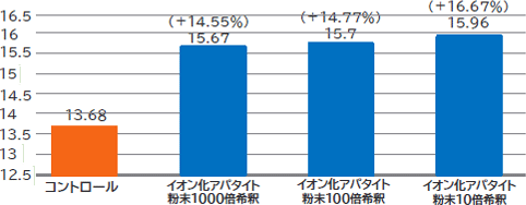 イオン化アパタイトが™、普通のアパタイトに比べ、生体親和性が高いことはイオン発生量が多い事で証明される。