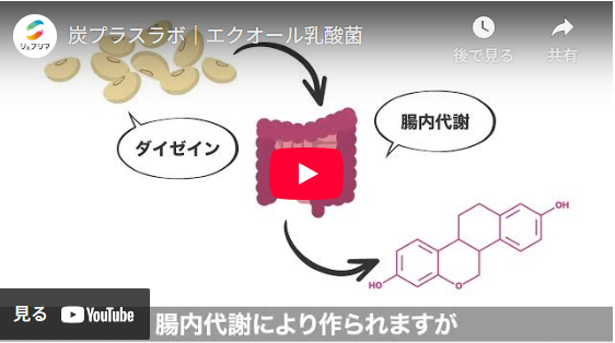 - エクオールを産生できる腸内細菌を持つ人は、欧米人で約30%、日本人で約50%とされている。腸内環境は、食習慣により変化し、エクオールを産生できなくても、そのあと産生できる人になる可能性がある。