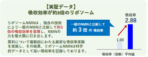 | 自社保有のエビデンス | 吸収率約3倍(一般のβ-NMNと比較) |