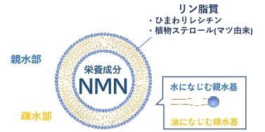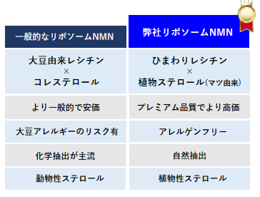 | 原材料表示例 | β-ニコチンアミドモノヌクレオチド(β-NMN)/レシチン(ヒマワリ由来)植物ステロール(マツ由来) |